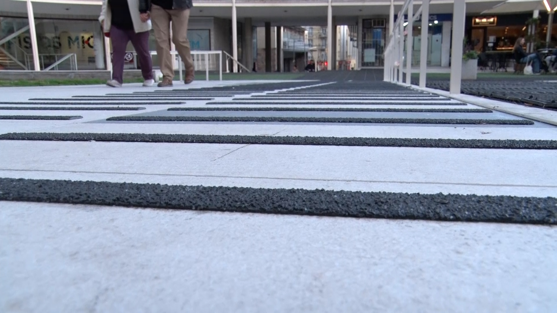 Instal·len bandes rugoses a la plaça del Mig per evitar relliscades