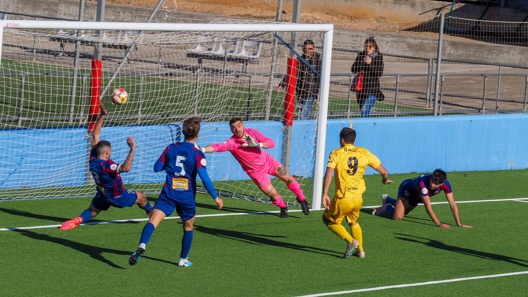 El d’avui ha estat el partit més desagradable de la temporada. Pels futbolistes, que han hagut de jugar amb molt de vent, i pel espectadors, que no han pogut gaudir del joc. Hi ha hagut poca continuïtat, molt de joc directe frenat per la tramuntana i escasses ocasions clares de gol. A la primera meitat, l’Olot ha jugat amb el vent a favor i ho ha aprofitat per avançar-se en el marcador en el minut 34 gràcies a un servei de banda que Blázquez ha enviat a dins l’àrea i que Marc Mas ha convertit en el primer gol del partit. I al minut 12 de la segona, tot i tenir el vent en contra, els olotins han sorprès l’Escala amb un altre gol de Mas; en aquest cas, després d’una centrada de Terma que Roquet ha posat als peus del pitxitxi. Amb el 0-2, els olotins se les prometien molt felices. Ha pogut fer el 0-3 en una acció davant de porteria de Roquet i pocs s’esperaven que l’Escala fos capaç d’aixecar-se, però l’equip d’Aday Benítez ho ha fet amb dues fuetades. Al minut 18, Xumetra ha retallat distàncies amb un bon gol des de la frontal i al 29, Pime ha rebut una passada en profunditat i ha superat la sortida de Batalla per marcar el 2-2.