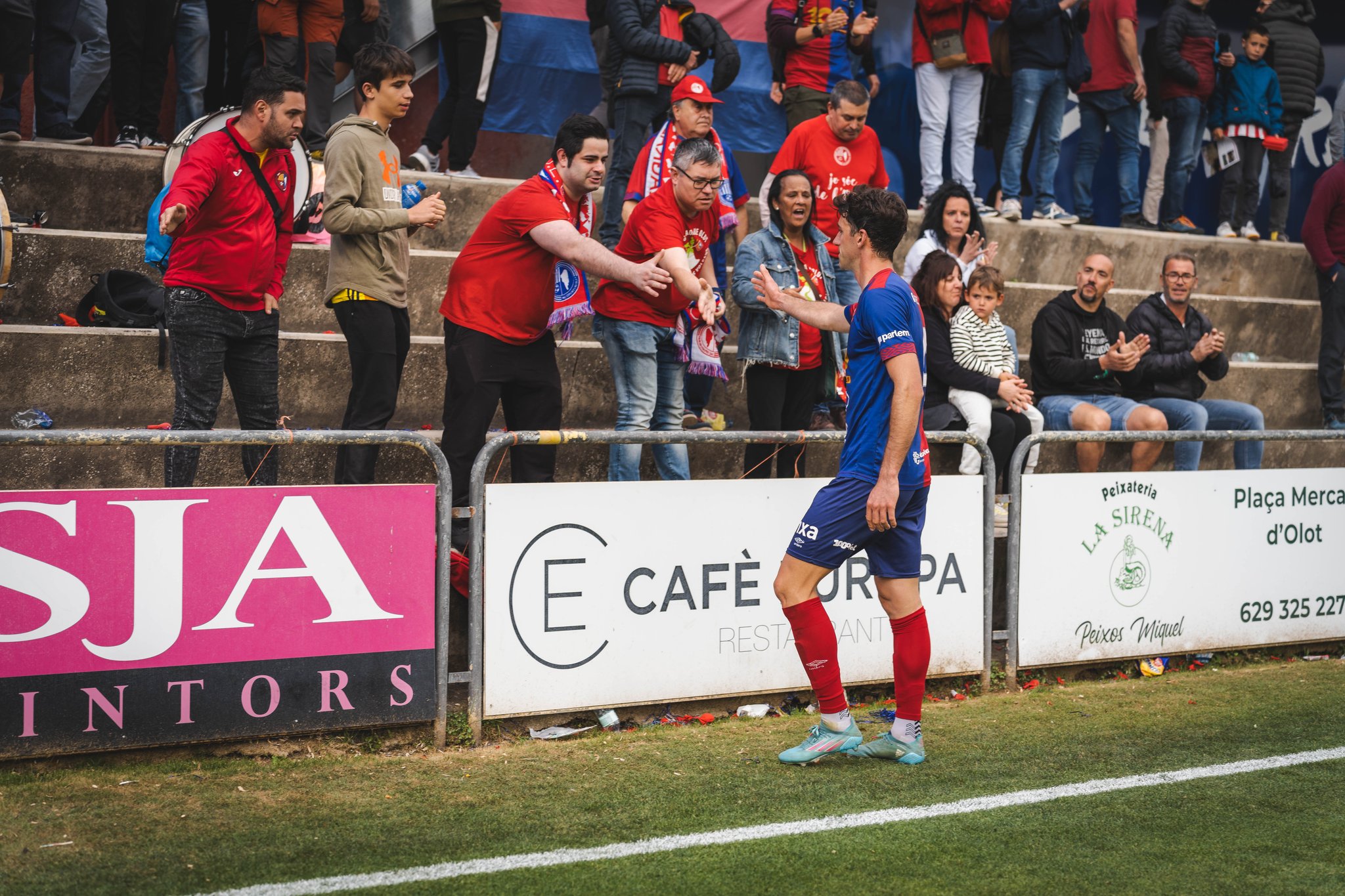 Avui l’Olot no ha estat l’Olot. No ha xutat a porteria fins a la recta final i en cap moment ha dominat el partit com està acostumat a fer-ho habitualment. A la primera meitat, ha tingut alguna arribada a la porteria d’Aroca, però les més clares han sigut del Tona. Pau Morer ha pogut marcar en dues ocasions importants: en una ha topat amb Batalla i en l’altra ha enviat la pilota a fora per poc. El marcador, però, no s’ha mogut fins a la segona part, quan els osonencs s’han avançat gràcies a un molt bon gol de Pol Fernández. Al minut 17, el carriler s’ha desfet de Bigas i Barnils i ha definit davant de Batalla per marcar el 0-1. I la situació encara ha empitjorat més a cinc minuts per al 90. Pau Morer ha fet una gran assistència a Adrià Casanova i el davanter de Joanetes, de primeres a dins l’àrea, ha fet el 0-2 que ha emmudit del tot l’Estadi Municipal. Els 1.600 espectadors que hi havia s’han quedat amb les ganes de celebrar el títol i l’ascens.