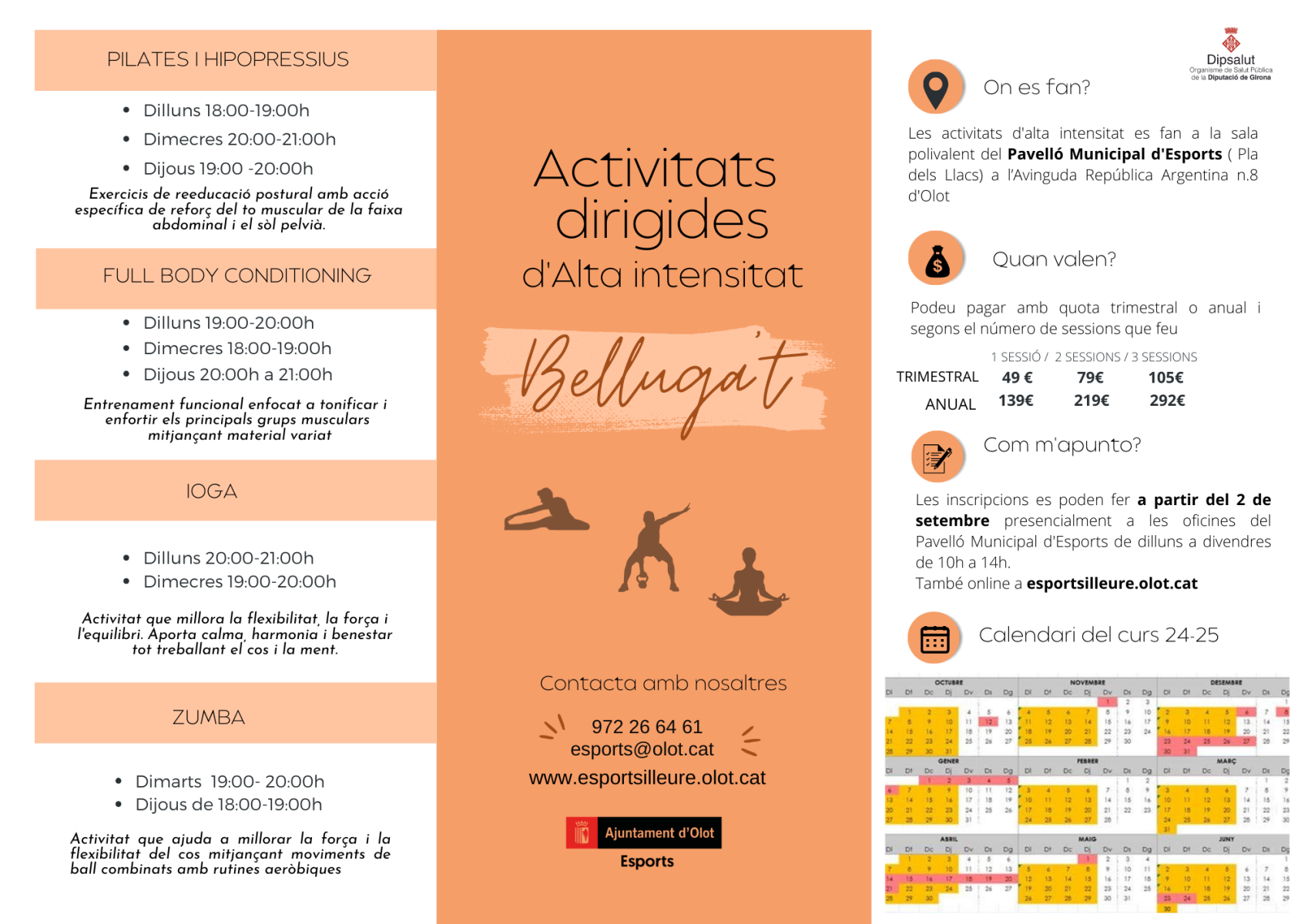 Les inscripcions es poden fer a través del lloc web de l’Àrea d’Esports de l’Ajuntament d’Olot o de forma presencial a les oficines del pavelló d’esports de dilluns a divendres de deu del matí a dues del migdia.
