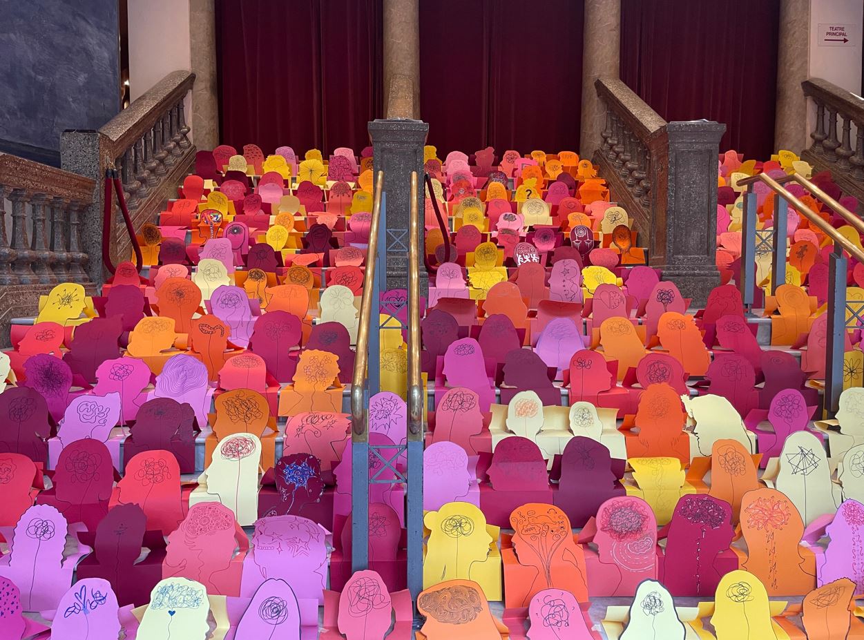 Aquest dijous, s’han dut a terme algunes activitats per commemorar el Dia de la Salut Mental. Com cada any, l’Escola d’Art d’Olot ho ha fet amb una intervenció artística on hi ha participat tots els alumnes del centre. De les escales de Sant Esteve s’ha hagut de traslladar al Teatre Principal, a causa del risc de pluja.
