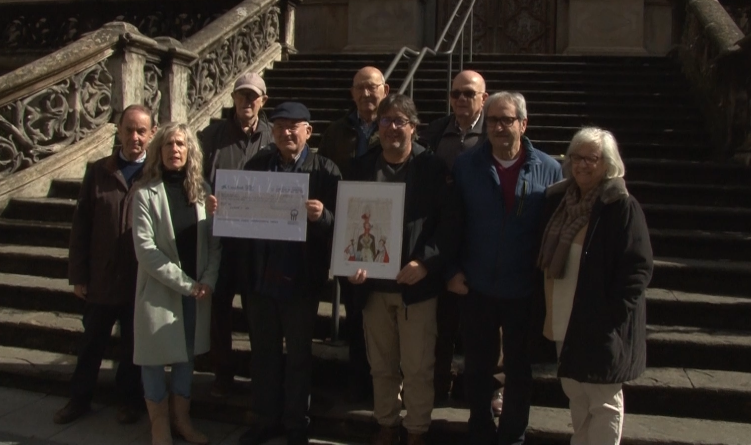 El Centre d’Iniciatives Turístiques d’Olot ha fet entrega, aquest dimarts, de la recaptació econòmica aconseguida a través de les litografies de l’Home dels Nassos de Tavi Algueró. En total s'han aconseguit 1.071 euros, que enguany van destinats a l’Associació Amics de Sant Esteve i el Santuari del Tura, per la reposició de les imatges de la façana de la basílica. “Tenim un miler d’euros, que esperem que siguin d’ajuda pels Amics de Sant Esteve. I esprem que hi faci un bon servei”, explica Adela Moya, presidenta del CIT.