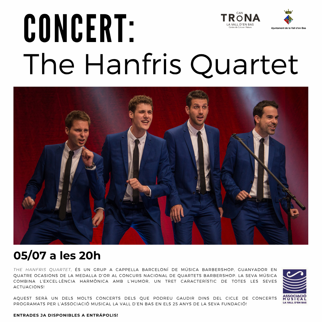 El cicle començarà aquest cap de setmana amb The Hanfris Quartet. Es tracta d’un grup vocal masculí format fa més de 15 anys i especialitzat en música Basbershop, actualment considerat un dels millors de tota Europa. Figueres explica perquè s’ha volgut que tornessin a vindre: “El grup de Hanfris, és un grup ja molt conegut i veterà de Barbershop, aquests cantants de capella.