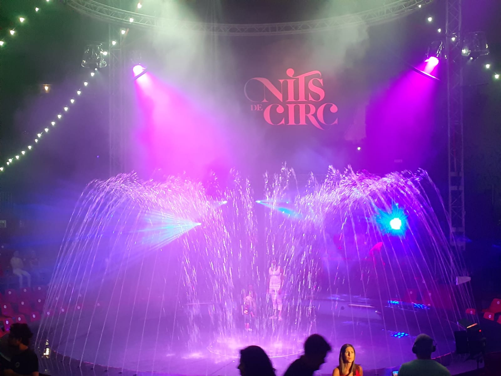 “La pista aquàtica de les Nits de Circ d’enguany són 24.000 litres d’aigua. A darrere l’escenari tenim tot un sistema de bombes i filtres que permeten que aquesta aigua estigui en circulació de manera permanent. Funciona com si fos un òrgan que nosaltres podem activar i desactivar les fonts. Sobretot, són fonts que van sincronitzades de vegades amb la llum i d’altres vegades amb la música de l’orquestra, la Party Circus Orquestra, que és la banda sonora en directe dels nostres espectacles.”