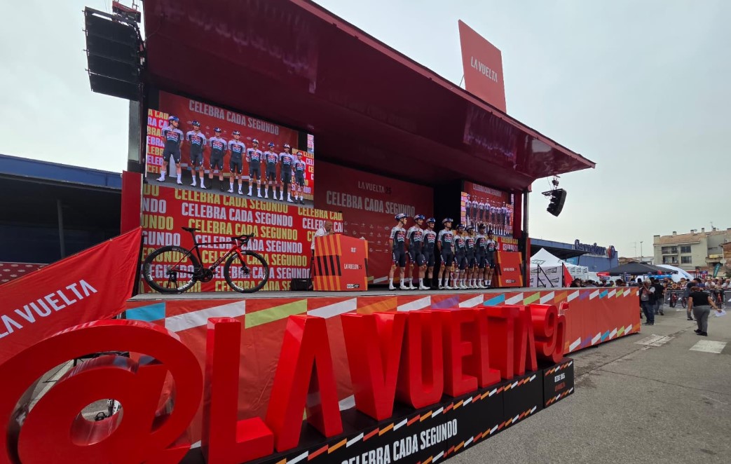 La pluja no ha fet la guitza en la sortida de la 6ª etapa de ‘La Vuelta’ que ha sortit des de l’avinguda Santa Coloma d’Olot. Amb centenars de persones a la zona pensada pels aficionats, les grans ovacions han arribat en les presentacions dels equips al podi.