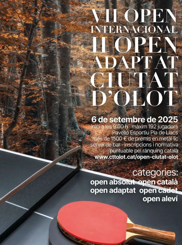 Aquest dissabte arriba una nova edició de l’Open Ciutat d’Olot, un dels tornejos de tennis taula més consolidats del panorama català. Enguany, la setena edició ja compta amb totes les places exhaurides quan encara falten uns dies per iniciar el torneig. Aquesta edició seguirà sent puntuable pel rànquing català i compta amb cinc categories diferents: l’Open Absolut, el Català, l’Adaptat, el Cadet i l’Aleví. Tot i que en aquest torneig es veuen els millors esportistes en l'àmbit català, el president del Club Tennis Taula Olot, Enric Llagostera, destaca l’ambient que es respira com un dels atractius de l’Open. Diu que “gran part de l’Open és tot l’ambient que es crea a fora. Amb l’espai fora el pavelló i amb la gent que tenim i que hi col·labora. L’Open són moments en què la gent, les famílies dels jugadors, parelles i amics comparteixen moments i experiències. El joc és important dins el torneig, però l’ambient que es respira el fa únic”.