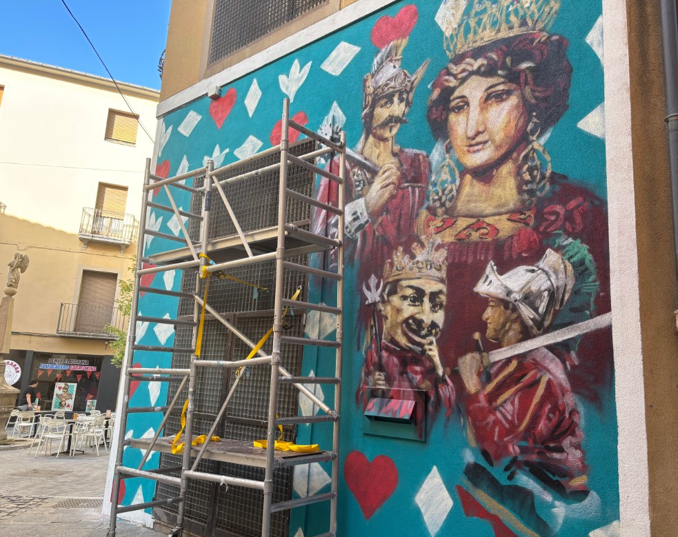 Pinzellada final al mural de l'artista 'Rice' abans de les Festes del Tura