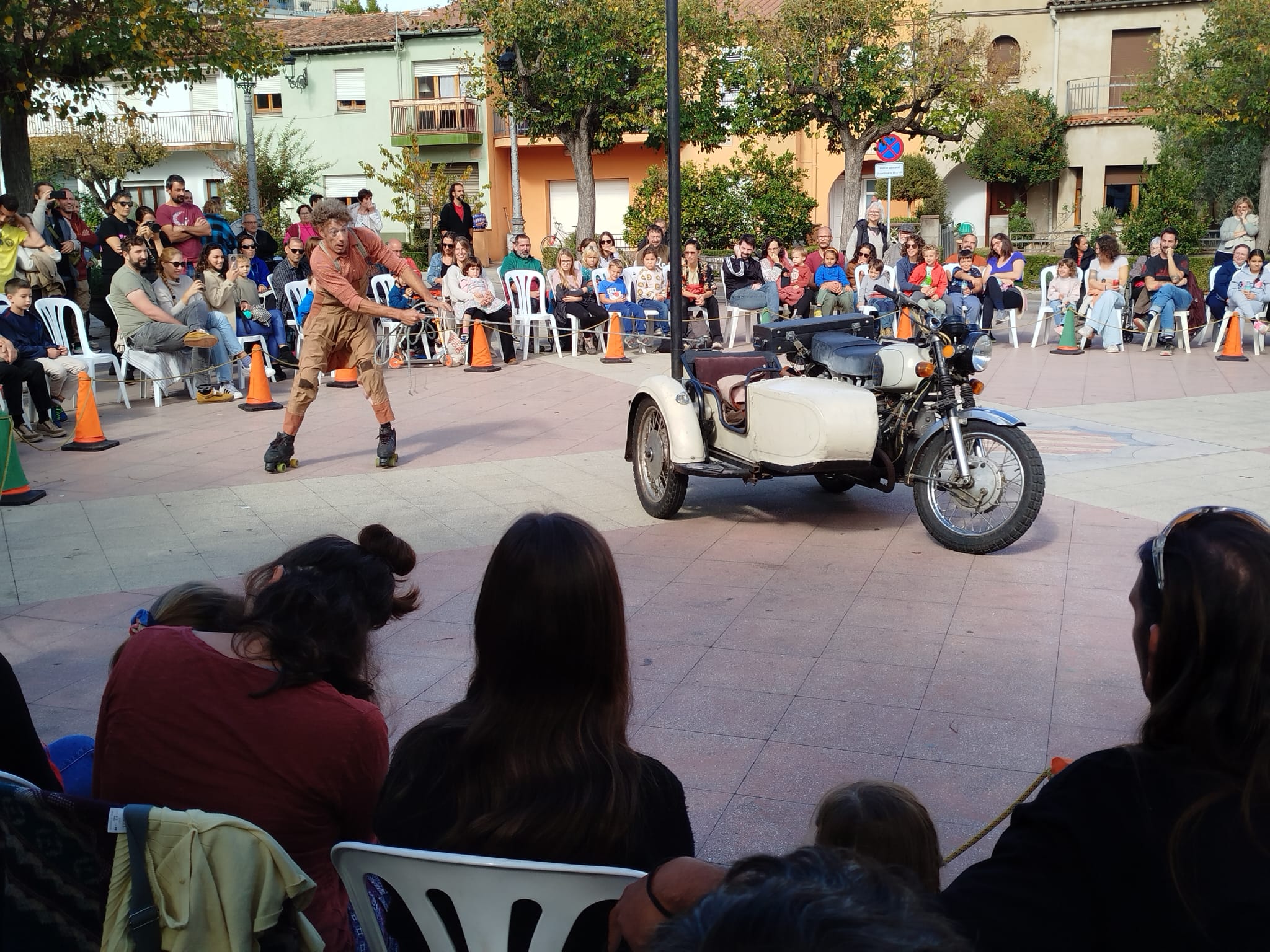 Entre tots els espectacles, el dissabte al migdia va tenir lloc ‘Sidecar’. On Xavi Arcos de la Companyia Pessic de Circ ha portat un clàssic show de pallassos: “Jo m’he inspirat molt en els pallassos clàssics, sóc un gran fan. De fet, aquest espectacle fa ja quinze anys que roda, mai millor dit, rodant per les places i carrers. Comença a ser una mica un clàssic, fugint dels grans clàssics, però sí que m’he inspirat amb ells.”