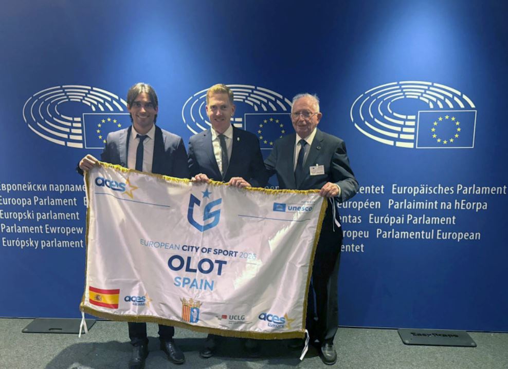 Fa uns dies, el regidor d’Esports de l’Ajuntament d’Olot, Aniol Sellabona i el cap de l’Àrea d’Esports, Marià Clavell van recollir el diploma i la bandera oficial que ACES Europe ha atorgat per acreditar que Olot serà Ciutat Europea de l’Esport 2026. Amb aquest reconeixement, Olot té moltes més facilitats a l’hora de poder acollir grans esdeveniments en l'àmbit nacional i internacional. Aquesta acreditació, no només permetrà acollir i organitzar diferents esdeveniments, sinó que també se’n veuran beneficiats els diferents clubs i entitats esportives i les seves instal·lacions. Ho explica el regidor d’Esports a l’Ajuntament d’Olot, Aniol Sellabona, que diu que “volem que sigui una palanca perquè encara puguem potenciar més l’esport a casa. Que puguem donar un cop de mà als clubs, millora instal·lacions esportives com hem aprovat el pressupost més gran de la ciutat d’Olot per poder millorar instal·lacions esportives ja existents, entre d’altres”.
