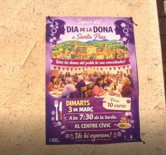L’Ajuntament de Santa Pau i el Col·lectiu de Dones de Santa Pau promouen un sopar de dones el dia 3 de març