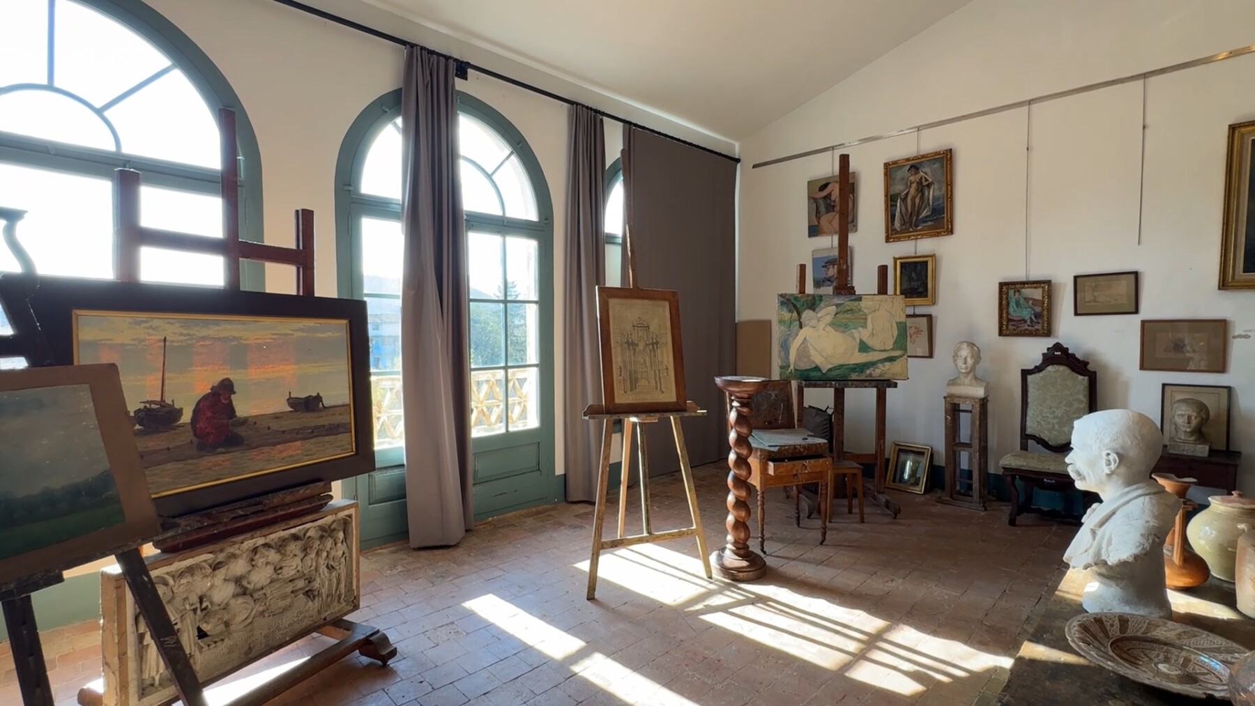 L’últim espai que visitem és l’estudi de pintura, amb el seu cavallet i una paleta de pintura. Fins i tot sembla que encara puguis olorar l’oli de trementina.